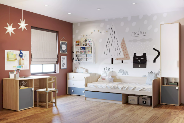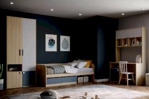 Письменный стол сочетает в себе функциональность и стиль. Он оснащен широкой рабочей поверхностью и встроенными полками с распашной дверкой. Стол может быть собран с секцией для хранения как на левую, так и на правую стороны. Высота полок фиксирована. При необходимости, стол может быть дополнен эргономичной и вместительной надстройкой из одноименной коллекции, чтобы создать полноценный рабочий уголок и сэкономить пространство в комнате ребенка.
