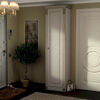 Прихожая выполнена в классическом стиле с декоративными элементами. Фасады и декоративные элементы патинированы, патина наносится вручную, по классической итальянской технологии и защищена матовым лаком.