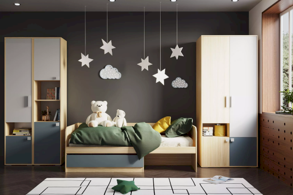 Шкаф-пенал из новой коллекции детской мебели Элиот представлен в нейтральных оттенках баунти, белого и контрастного маренго – цвета темной морской волны, которые отлично подойдут в комнату как девочки, так и мальчика. Благодаря универсальному дизайну шкаф легко впишется в любые современные интерьеры.