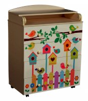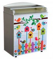 Пеленальный комод 800/4 Lilu 3 отличается привлекательным дизайном с использованием тематических детских принтов. В конструкции изделия предусмотрены 4 маленьких передвижных колеса, несколько вместительных ящичков на шариковых направляющих и откидывающаяся пеленальная столешница. Детский пеленальный комод, декорированный красочным рисунком, вмещает в себя постельные принадлежности, средства гигиены, распашонки, подгузники, игрушки, ползунки и другие личные вещи ребенка. Гладкая столешница идеально подходит для пеленания ребенка, а колесики позволяют быстро перемещать комод.