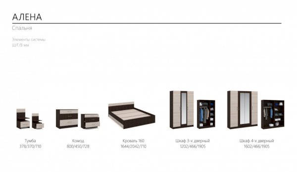 Модульная спальня Алена Венге/Дуб молочный (Империал) - за 34 760 руб. в Мелитополе. Купите на сайте melitopol.onlinemarketmebeli.ru или по телефону 8(800)505-30-63 уже сегодня! Уточнить наличие, комплектацию, актуальную цену можно бесплатно у менеджера ежедневно. Закажите Модульная спальня Алена Венге/Дуб молочный (Империал) до конца акции! Доступна покупка в кредит, рассрочку. Доставим со склада или на заказ.
