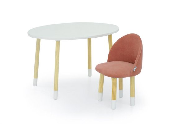 Ножки выполнены из массива сосны, тщательно отшлифованы и покрыты лаком на водной основе. Низ ножек украшают белые “носочки”, покрашенные эмалью на водной основе. Все используемые при производстве материалы полностью экологичны и безопасны.