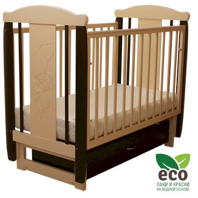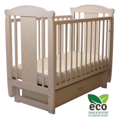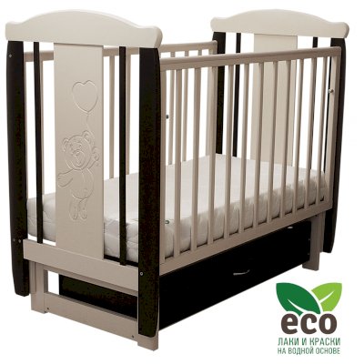 Кроватка "Соня 04" имеет механизм качания поперечный маятник. Механизм качания фиксируется. Возможен вариант с ящиком.