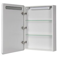 Зеркальный шкаф Америна 60 от AQUATON со встроенной светодиодной подсветкой - выбор тех, кто ценит лаконичную эстетику минимализма и исключительную практичность. Модель в современном стиле выпускается с левой или правой ориентацией. Корпус из влагостойкой ЛДСП покрыт белоснежной глянцевой краской ультрафиолетового отверждения, которая обеспечивает защиту от влаги и долгий срок службы. Глубина изделия - всего 14 см, что позволяет использовать его в качестве альтернативы привычному зеркалу. Модель комплектуется LED-светильником, расположенным на задней стенке шкафа. Внутри находятся две стеклянные полки для хранения. Петли с доводчиком позволяют открывать дверцу шкафа плавно и практически бесшумно.