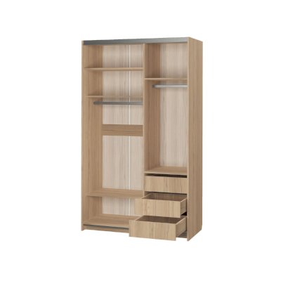 Наполнение: шариковые направляющие (3 выдвижных ящика), ролики 2-х дв. для шкафа KRM2, штанга для одежды, полки.