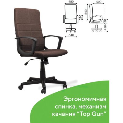 Надежный механизм качания "Top Gun" гарантирует хорошую поддержку спины и поясницы за счет возможности свободного качания с фиксацией в одном рабочем положении и регулировку угла наклона под вес сидящего.