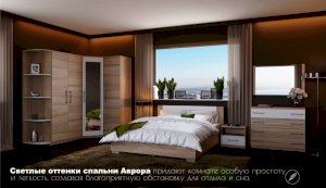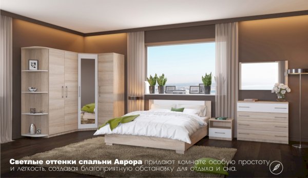 Аврора – это ХИТ продаж в Европе! Спальня выполнена в современном европейском стиле. Благодаря нейтральным оттенкам мебели, Вы сможете создать яркий и функциональный интерьер, отражающий ваши вкусы и предпочтения. 5 вариантов шкафов с вместительными полками и качественной фурнитурой позволяют создать полноценную систему для хранения. При создании спальни Аврора реализованы в полной мере «зеленые» принципы, которые напрямую влияют на экологичность мебели и соответственно на качество сна и наше здоровье. Система выполнена из высококачественных материалов.