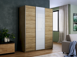 Шкаф-купе 3-х дверный Прайм ДСП/Белое стекло/ДСП (Е1)