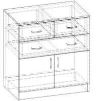 • Корпус, полки и фасады изготовлены из ЛДСП 16 мм с кромкой ПВХ 0,4 мм.