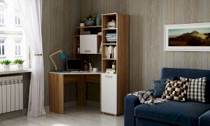 Стеллаж и пенал можно устанавливать как с левой, так и с правой стороны от углового стола, а также использовать как отдельный элемент.