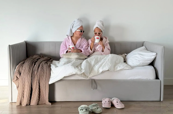 Подъемный механизм позволяет легко скрыть под матрасом дополнительное пространство для хранения вещей — идеально для хранения постельного белья, игрушек или сезонной одежды.