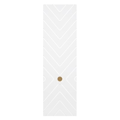 Изделие выполнено из ЛДСП в сочетании с фасадами МДФ в глянцевой пленке ПВХ. Рисунок фрезерованных фасадов в виде синхронных четких линий придает мебели ультрасовременный вид. Лаконичная ручка серьга акцентирует внимание и дополняет декор фасада. Внутреннее наполнение представлено двумя полками ЛДСП.