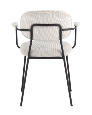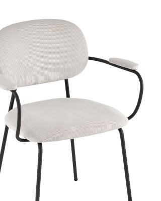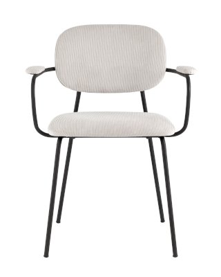 Современный обеденный стул с подлокотниками и металлическими ножками. Обивка выполнена из мягкого велюра. Металлический каркас черного цвета огибает спинку и плавно переходит из подлокотников в ножки. Широкое сиденье обеспечивает удобную посадку и уют. На подлокотниках для дополнительного комфорта предусмотрены мягкие накладки.