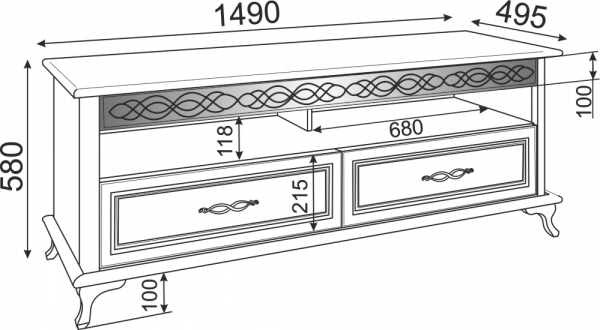 • Размер:(Ш×Г×В): 1490х495х580 мм
