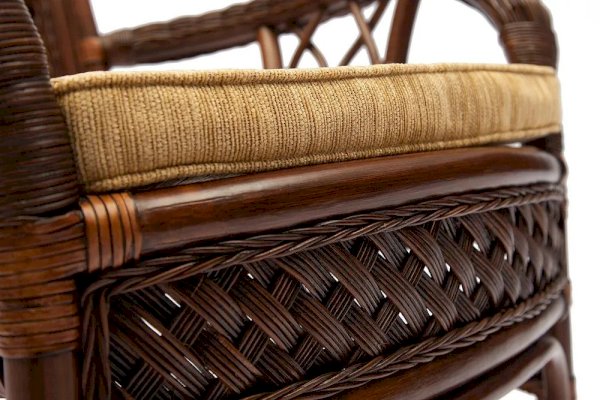 Материал: каркас - ротанг (высший сорт), мягкие элементы - ткань (хлопок+полиэстр) + наполнитель (холлофайбер), столешница - закалённое стекло