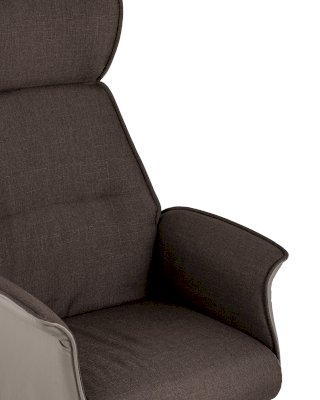 Обивка выполнена из качественной экокожи в сочетании с практичной тканью. Комфорта добавляют удобные подлокотники, а благодаря механизму регулировки высоты и качания можно выбрать наиболее удобное положение.