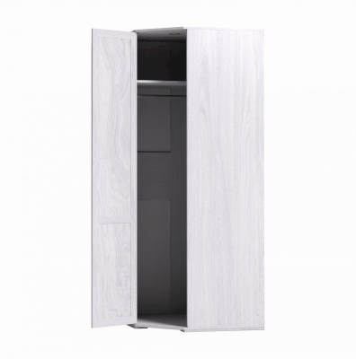 Используйте углы в комнате рационально! Угловой шкаф оснащен стационарной штангой длиной 81 см, полочками для белья и автоматической подсветкой, которая включается, если шкаф открыт. Фасад углового шкафа изготавливается только в исполнении «левый» (определяется по расположению петель). По своим габаритам угловой шкаф подходит для компоновок глубиной 590 мм.