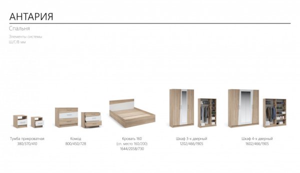 Модульная спальня Антария Дуб Сонома/Белый (Империал)