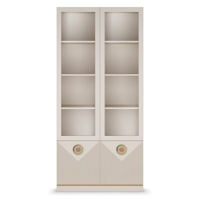 Вашему вниманию предлагается большая вместительная витрина из коллекции «Капри». Модуль выполнен в стиле модерн и имеет яркий дизайн - гармоничное сочетание пастельных кремовых оттенков с яркой и нарядной фурнитурой, декоративной фрезеровкой фасадов и золотой кромкой над цоколем делают образ мебели незабываемым.