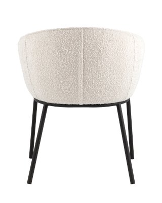 Обеденный стул Дон с мягкой полукруглой спинкой и сидением из ткани букле отлично впишется в обеденную зону любой современной кухни. Каркас металлический, ножки выполнены в черном цвете. Дополнительно предусмотрены специальные подпятники, которые предотвращают скольжение и повреждение напольного покрытия. Прекрасно сочетается с обеденным или письменным столом.