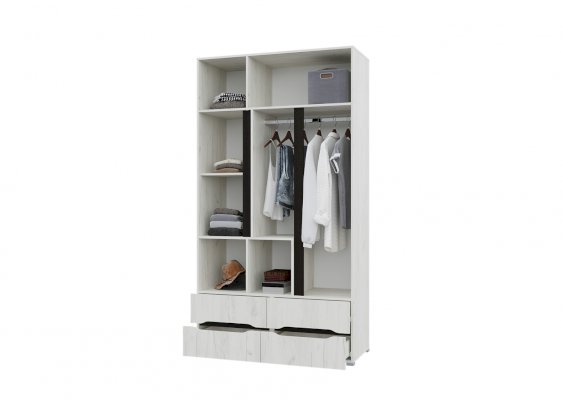 Наполнение: полки + 2 стационарные штанги + 4 выдвижных ящика