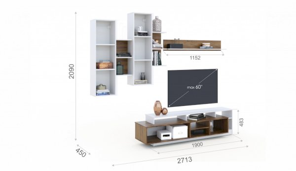 • ТВ-тумба рассчитана на диагональ телевизора до 60 дюймов