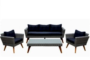 В составе комплекта: трехместный диван, два кресла и столик.
