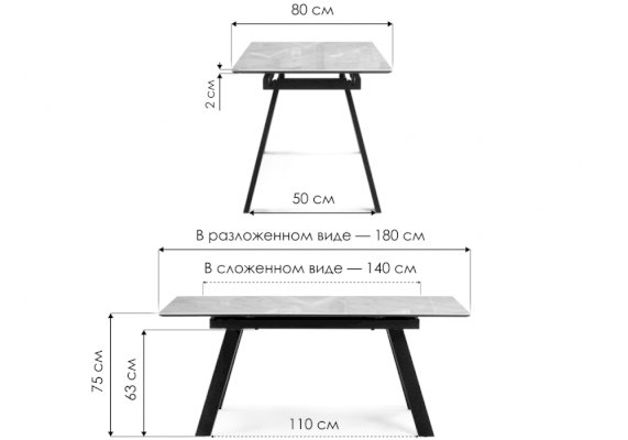 Длина в разложенном виде: 1800 мм