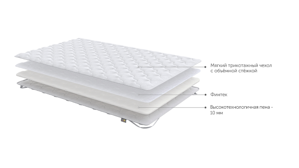• Продлит срок службы матраса. Верхняя пластина защитит его от загрязнений и деформаций.