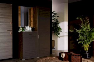 Выдвижная штанга предназначена для размещения одежды на вешалках-плечиках и помогает быстро найти нужную вещь. В шкафу также находятся и две широкие полки. Антресольная полка лучше всего подходит для хранения сезонной одежды, а нижняя – для размещения коробок с обувью.