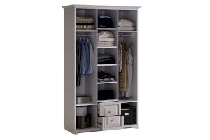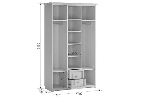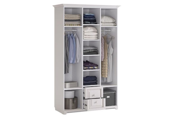 Нет ничего лучше, чем сочетание красоты и практичности. 3-створчатый шкаф «Белла» тому доказательство. Фасады шкафа выполнены в нежном оттенке джелато, дверцы украшены фрезеровкой, а ручки – декоративными кистями. Центральный отсек шкафа оснащен полками, а боковые – штангами для одежды. Выдвижные ящики прекрасно подойдут для хранения вещей.