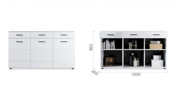 Белые глянцевые фасады МДФ, комода Йорк, зрительно увеличивают пространство, добавляют света в комнату. Вместительные полки и ящики на телескопических направляющих помогут грамотно организовать пространство, на комод можно поставить фото, вазу с цветами или украсить Вашу гостиную другими милыми вещами. Мебель смотрится красиво со всех сторон, т.к. для сборки используется скрытая фурнитура. Мебель выполнена из экологически безопасных материалов.