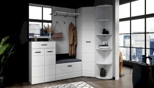 Компактная и функциональная вешалка из белого ЛДСП включает в себя самое необходимое для организации хранения в прихожей. Верхняя полка разместит головные уборы, а металлическая штанга и пять крепких крючков контрастного черного цвета поместят на себе одежду объемом с небольшой шкаф. Идеально компонуется со всеми модулями системы Йорк.