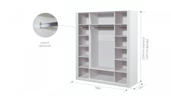• Объем: ШКАФ 4-Х СТВОРЧАТЫЙ ЕВА-10 33 300 Купить ЛДСП 16 мм. Кромка ПВХ 2 мм. Кромка ПВХ 0,4 мм. Петля с доводчиками Зеркало Штанга ДхВхШ: 1884х2304х583 мм