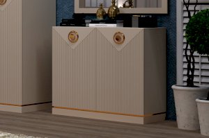 В коллекции «Капри» вам доступен широкий выбор модулей для хранения, среди них особое место занимает комод для гостиной или спальни. Благодаря конструкции с дверками такой предмет мебели прекрасно впишется в состав композиции для гостиной или найдет свое место в спальне, его можно прекрасно сочетать с зеркалом «Капри». В случае необходимости на него можно установить телевизор и тогда комод будет служить вам как ТВ-тумба.