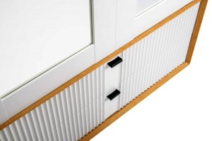 • Шкаф разделен на 2 отделения: нижнее с двумя ящиками друг под другом на направляющих нижнего крепления не полного выдвижения с доводчиком