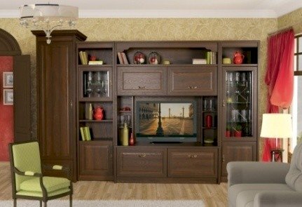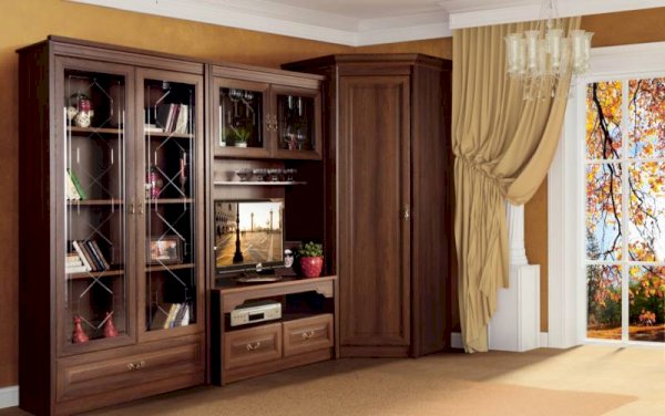 • Декоративные торцевые накладки и карнизы придают завершённость и солидность внешнему виду гостиной