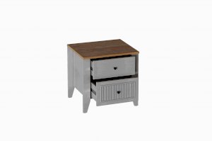 Тумба прикроватная Валенсия выполнена из ЛДСП в комбинации Дуб натуральный светлый / Персидский жемчуг.
