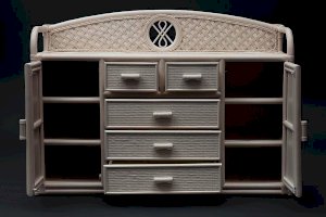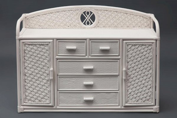 Великолепный высокий комод Secret De Maison из французской коллекции ANDREA, выполненный в колониальном стиле, прекрасно впишется в интерьер квартиры или загородного дома. При всей простоте исполнения, комод является довольно вместительным и функциональным предметом обстановки. Пять удобных выдвижных ящиков разного размера и два закрытых отделения с полками позволят хранить огромное количество предметов. Декоративная панель и боковые бортики сверху надежно защитят предметы от падения. Комод выполнен вручную из натурального ротанга с использованием нескольких видов традиционного индонезийского плетения. Натуральный ротанг, покрытый прозрачным матовым лаком, устойчивым к УФ-излучению, прочен, долговечен, способен выдерживать большую нагрузку, и будет радовать вас своим первоначальным видом долгие годы. Модель идеально сочетается с мебелью из коллекции ANDREA, поставляется в собранном виде.