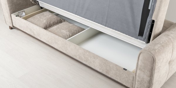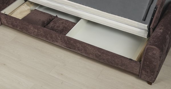 Выполнен в модном мягком велюре ROMANCE оригинальной фактуры. Ткань легко чистится, устойчива к зацепам, обладает повышенной износостойкостью. Благодаря особой технологии гладкого крашения Frozen Flower на поверхности ткани присутствует легкий краш–эффект, подчеркивающий невероятно мягкую фактуру ткани.