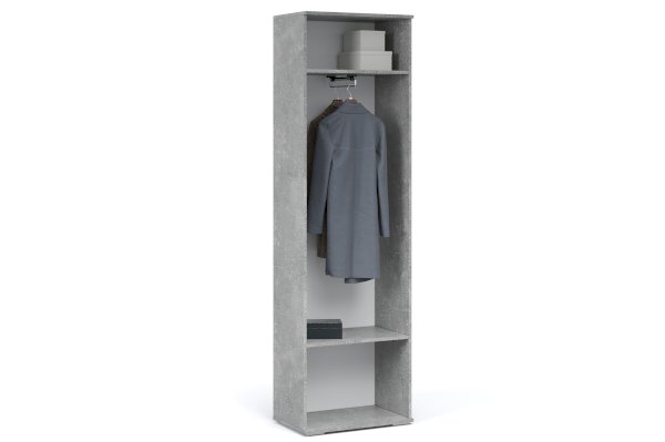 Платяной шкаф – оптимальное решение для небольшой прихожей, спальни или гостиной. Внутри предусмотрены секции для белья и отделение с поперечной металлической овальной штангой. Идеально компонуется со всеми модулями системы Виола. Мебель выполнена из экологичных материалов.