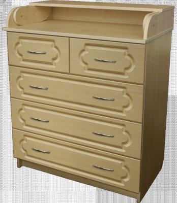 Комод Соня 80/5 имеет не только красивый вид, он функционален и эргономичен. В пяти ящиках вы сможете разместить не только детские вещи, но и средства по уходу за новорожденным: присыпки, крема, подгузники, а также постельное белье.