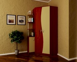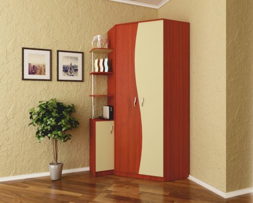 Вместительный угловой шкаф — эффективное использование пространства. Изогнутые линии фасадов придадут вашей комнате элегантность.
