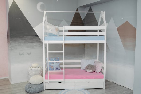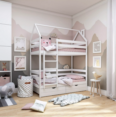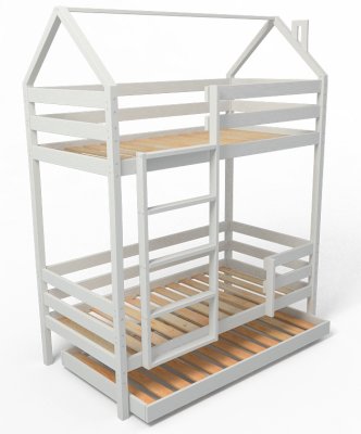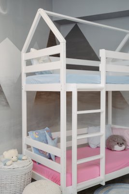 Детская двухъярусная кроватка-домик Classic из сосны – это аконичный дизайн, безопасные материалы и краски, качественное исполнение, простота в сборке!