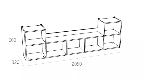 Полка сделает рабочую зону в детской еще более функциональной. Модуль состоит из трех закрытых отделений и двух открытых ниш. В боковых отделениях предусмотрена полка для размещения книг. Открытые ниши подойдут для размещения декора, фотографий или игрушек.