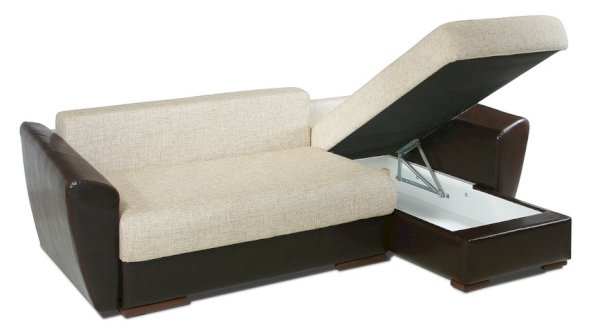 Это эксклюзивная модель углового дивана. Здесь все предусмотрено для комфорта пользователя. Усовершенствованная система трансформации «пантограф» дает возможность избежать повреждения пола или ковра при раскладывании, наполнение в виде независимых пружинных блоков в сочетании с мягкими подушками является оптимальным вариантом для комфортного, расслабляющего отдыха. Спальное место очень просторно, поскольку рассчитано на двух взрослых людей.