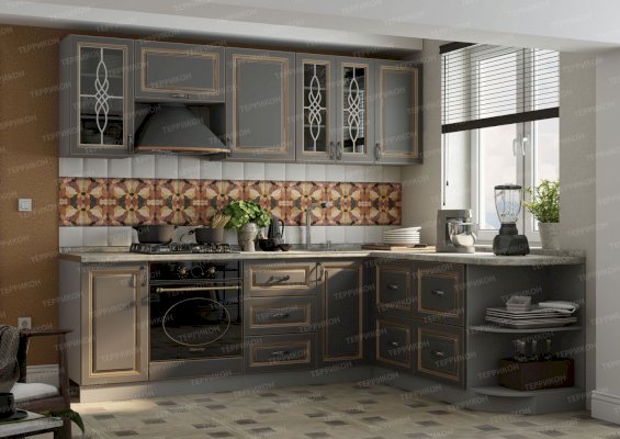Модульный кухонный гарнитур Женева софт графит с патиной золото (Террикон)