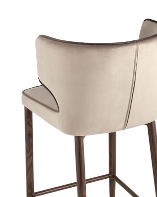Мягкая обивка выполнена из велюра - прочного износостойкого материала. Прямые металлические ножки имеют нестандартную форму в виде перевернутого конуса, поэтому обеспечивают хорошую устойчивость и делают стул оригинальным. Удобная подножка позволяет расположиться максимально комфортно.
