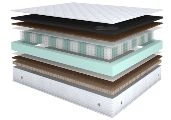 Наполнитель: Высокоэластичная пена с эффектом памяти Memorix, кокосовая койра, НПБ мультипокет 520  шт/кв.м., система усиления боковой поддержки, ППУ, перфорированный латекс Latex Perfo