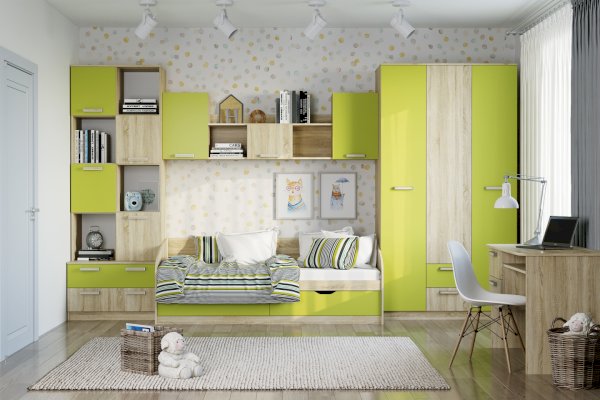 Модульная детская Акварель лайм (Сильва)